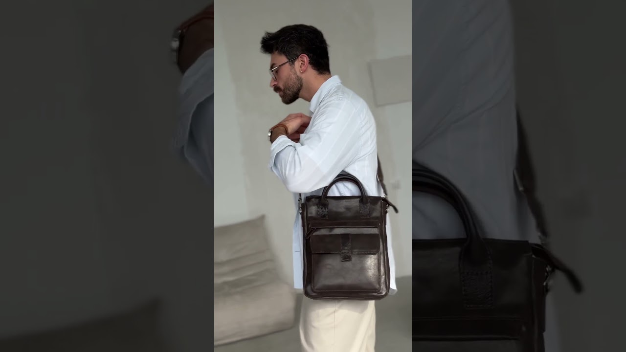 ОписаниеМужская сумка из натуральной кожи от белорусского бренда Igermann — это стильный и практичный аксессуар для современных мужчин, который идеально дополнит как деловой, так и повседневный образ. Модель выполнена в классическом стиле и сочетает в себе максимальное удобство и функциональность. Кожаная сумка среднего размера подходит для работы, вмещает документы формата А4. Имеет одно основное отделение на подкладке. Закрывается на молнию. На передней стенке расположены 2 кармана: накладной объемный, который закрывается клапаном на магнитный замок, и прорезной на молнии. На задней стенке сумки расположен карман быстрого доступа. Внутри для организации хранения мелких вещей предусмотрены открытый карман и на молнии. Благодаря коротким ручкам и съемному регулируемому ремню сумку удобно носить в руках, на плече или в качестве кросс-боди. Небольшая деловая сумка придаст владельцу серьезность и статусность. Популярная модель понравится как молодому парню, так и взрослому мужчине – всем, кто ценит простоту и надежность. Вертикальная сумка планшет устойчива к перепадам температуры и износу, проста в уходе. Приобретая изделия Igermann, вы можете быть уверены в высоком качестве материала и пошива. Наши изделия станут достойным подарком к праздникам, ведь кожаные сумки долговечные и всегда остаются актуальными.